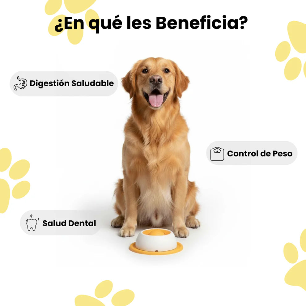 Reduce drásticamente el riesgo de asfixia y torsión gástrica al ralentizar la ingesta.